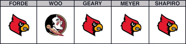 Pat Forde picks Louisville: The Yum Center has been the Cardinals' happy place—they're 9-0 there this season with only one game decided by fewer than 15 points. But Texas Tech and Kentucky have both exposed some shortcomings in the Louisville offensive attack, and Florida State certainly has the defensive ability to do the same. Jordan Nwora needs to be more active without the ball now that defenses are focusing on him.
